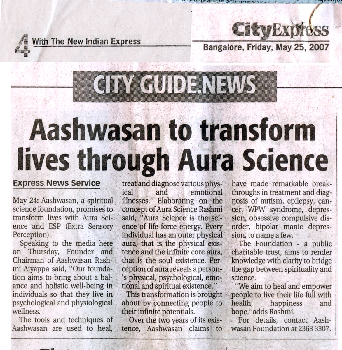 Aashwasan to Transform lives through Aura Science, Indian Express May 2007