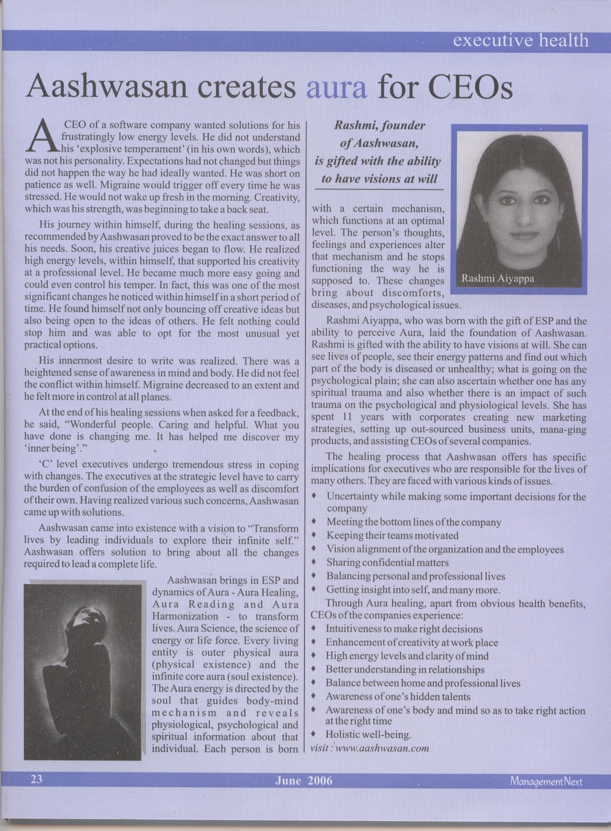 Aashwasan creates Aura for CEOs, Management Next Jun 2006